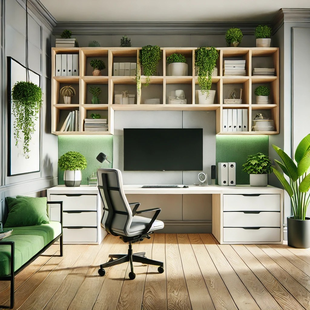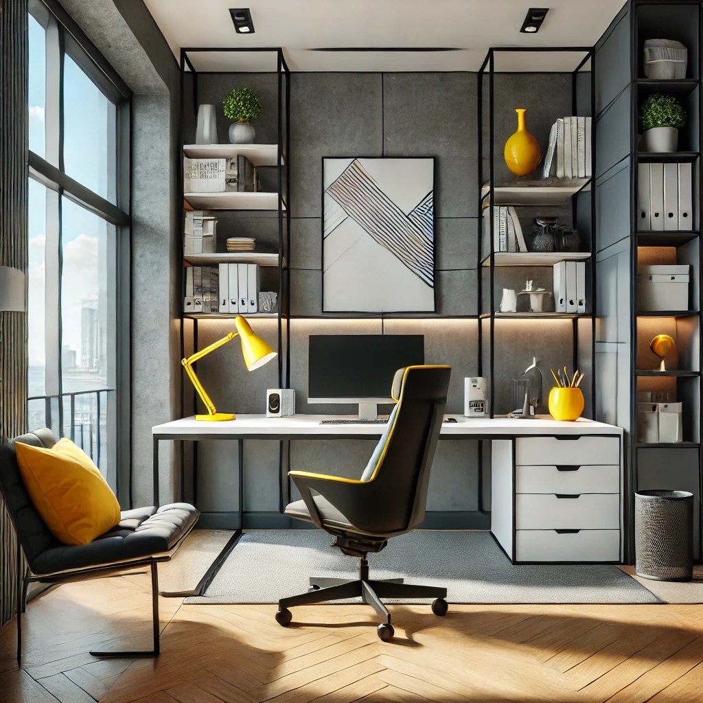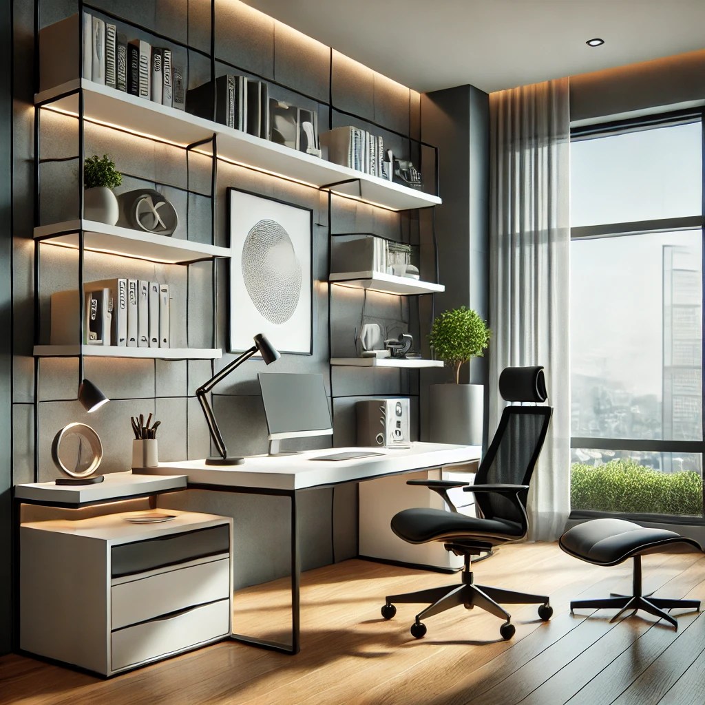 While modern designs prioritize simplicity, personalized decor is essential. Choose artistic desk accessories, geometric lighting fixtures, or an abstract painting to add character to the space. Additionally, greenery can improve air quality and bring warmth to a cool-toned room.