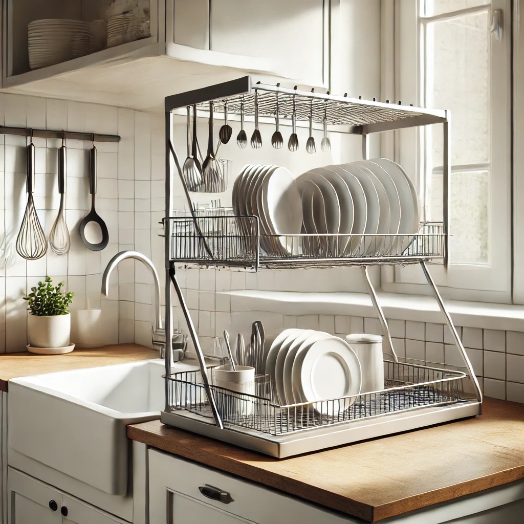 Invest in a foldable drying rack that can sit over the sink and be tucked away when not in use. It saves counter space while keeping your dishes organized.